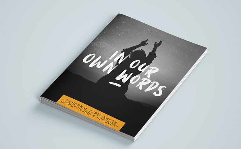 In Our Own Words contains a collection of personal stories, poetry and art created by service users. In addition, there is further information, contact numbers, plus a glossary of some of the common terms associated with psychosis and mental health care. Care coordinators give out the booklet to new service clients and a leaflet about peer support.
