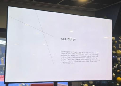 - Lucinda McArthur (Non-Executive Director, LSCFT) shared insights on Population health, behavioural science, and opportunities for Psychological Professions.