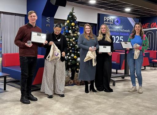 Winners in the Influence category: Anna Whiteoak, Mental Health Wellbeing Practitioner, Lancashire and South Cumbria FT; NHS Sefton Talking Therapies, Mental Health Matters; ClassClinPsych Collective, University of Lancashire